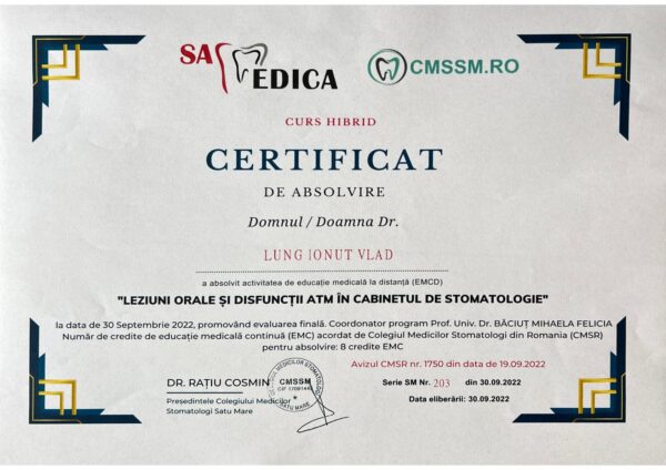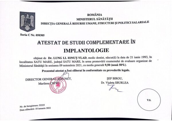 Certificare și garanție – Folosim exclusiv implanturi și lucrări dentare omologate, cu garanție extinsă.