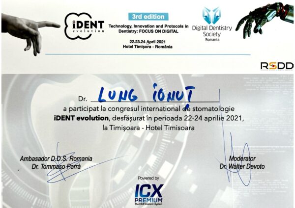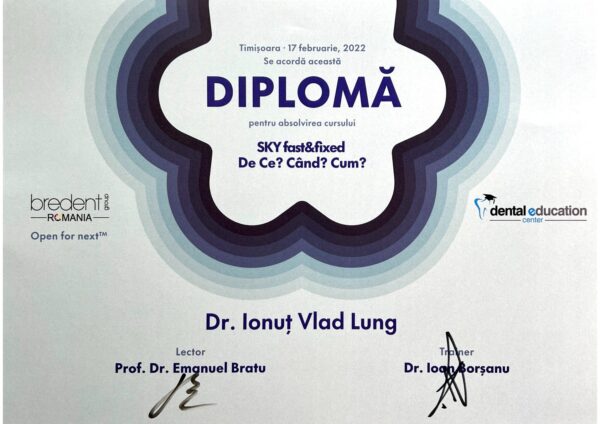 Dr. Lung Ionuț este medic specialist în implantologie dentară, cu expertiză în chirurgia dento-alveolară și o abordare personalizată pentru fiecare pacient. Este membru al Colegiului Medicilor Stomatologi din România și urmează constant cele mai noi tehnici și inovații în domeniu.